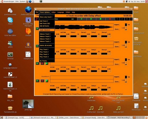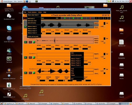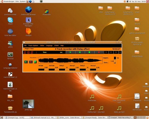 Oranje4 1.4.7,geschrieben in Python,einfach auf das Bild klicken für mehr screenshots,die Datei Oranje4_1.4.7.tar entpacken und Oranje4.py doppelklicken und starten oder die setup_oranje4.exe downloaden für Windows