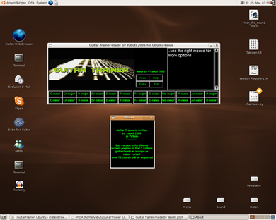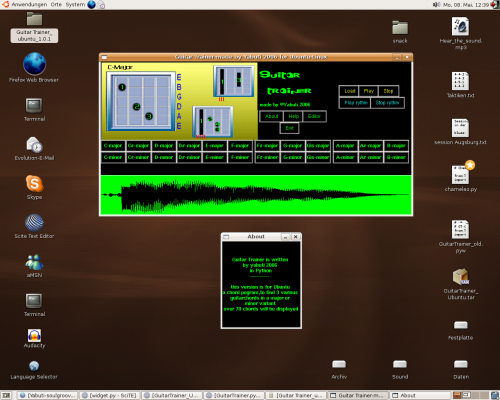 Guitar Trainer 1.0.2,geschrieben in Python,einfach auf das Bild klicken für mehr screenshots,die Datei GuitarTrainer_Ubuntu_1.0.2.tar entpacken und GuitarTrainer_Ubuntu.py doppelklicken und starten